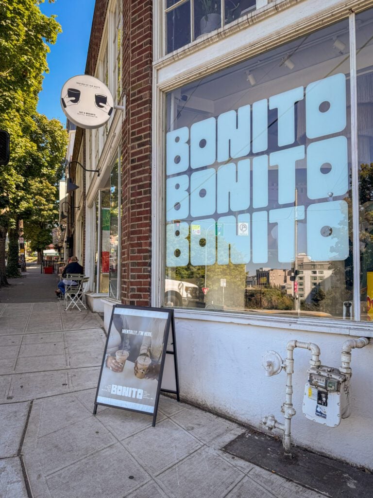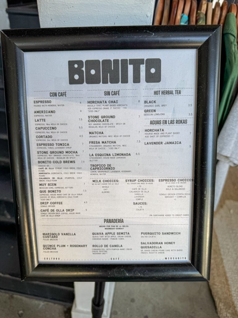 Bonito is an unapologetically latino space, from the drinks on the menu (cafe de olla syrup and horchata chai!), to the art they’re selling and displaying, to the music playing.