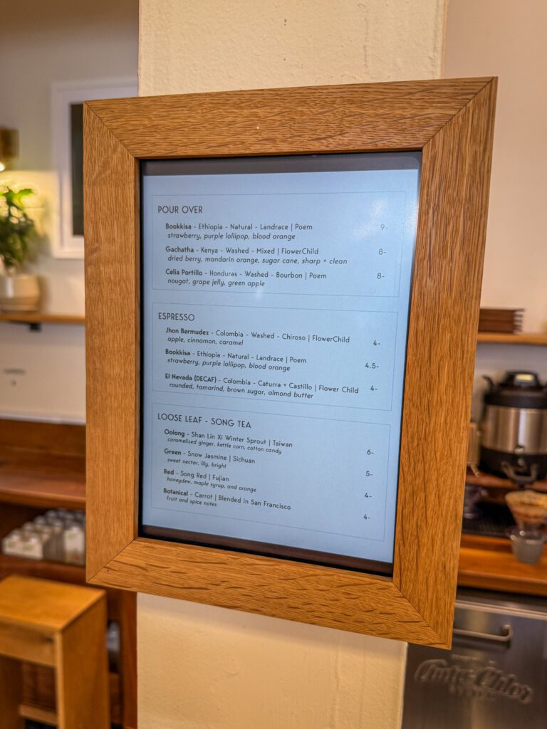 Putting aside the food here, which is part of the reason they have gotten really popular recently (which I can’t eat and thus have no opinions on other than being jealous of the people next to me), the coffee menu is really interesting.
