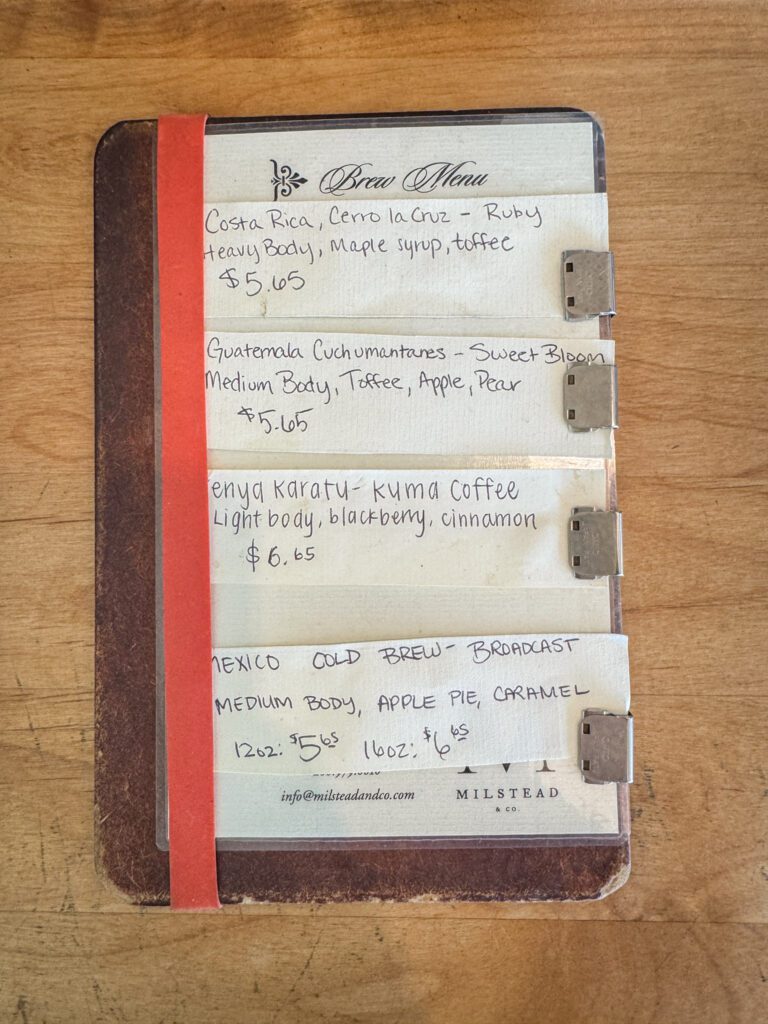 They have a menu with a familiar structure (if you’re familiar with the specialty coffee scene in west coast cities, anyway); basic espresso-based drinks, drip coffee (both batch brew and fancy pour over options), and specialty seasonal drinks (like a shakerato).
