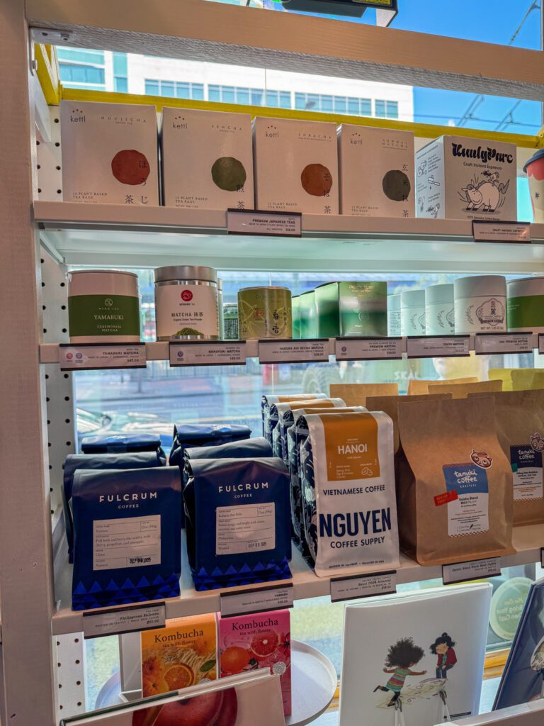 They use a range of coffee roasters, mostly from the Pacific Northwest, like Olympia, Heart, and Stamp Act, and they have the usual set of coffee offerings, from basic espresso-based drinks, rotating seasonal drinks, and even pour over.