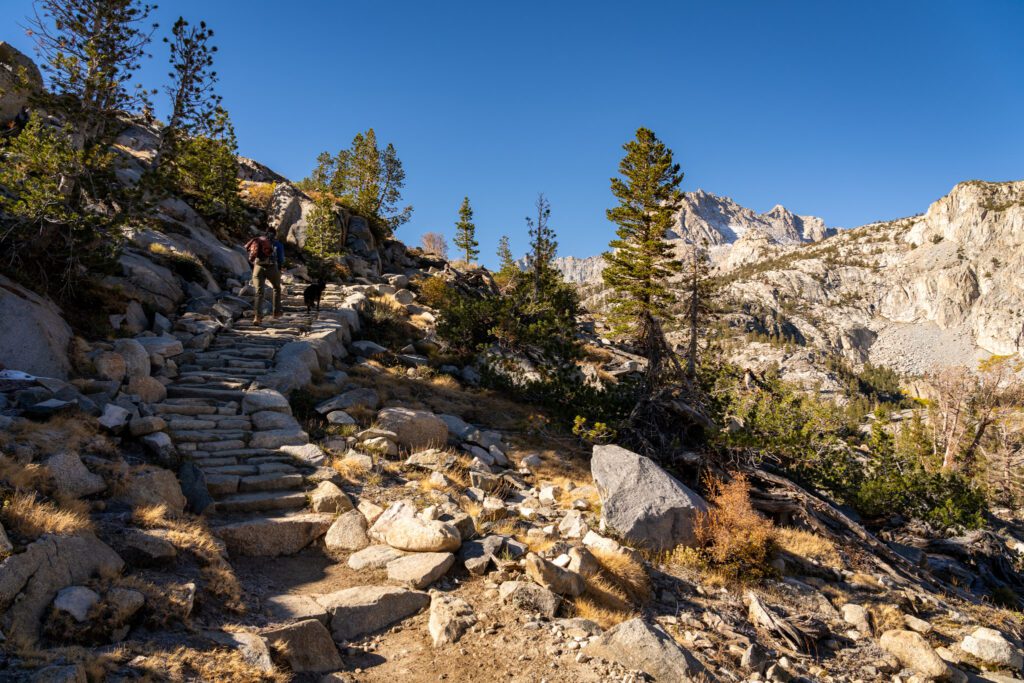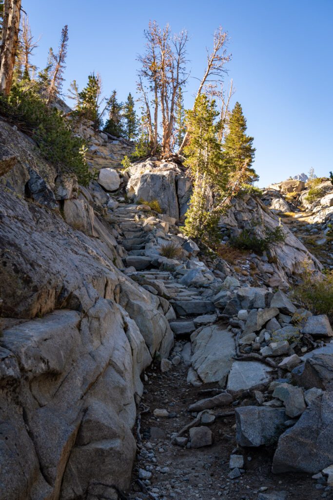 The trail starts from a trailhead on the side of the road just below the boat launch at Lake Sabrina.