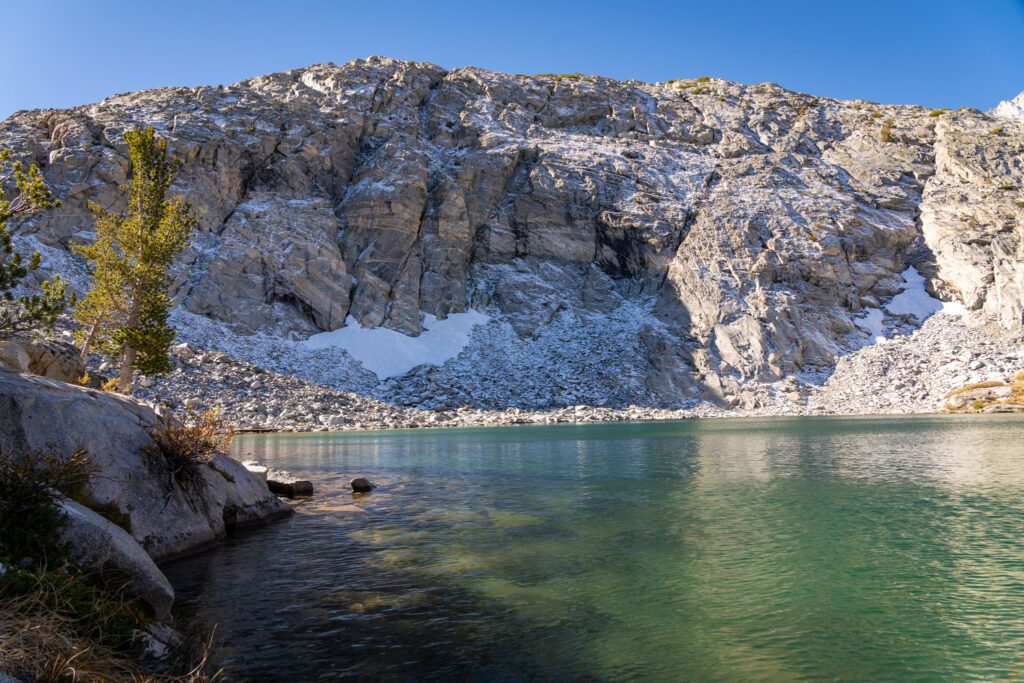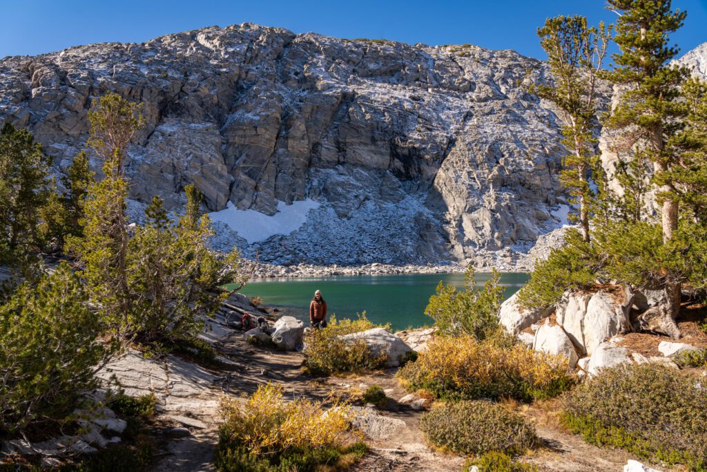 It’s a classic Eastern Sierra (or Rocky Mountains, or Dolomites) scene, with a crystal clear blue-green lake backed by towering slabs of granite and rocky peaks. It’s magical, and it’s clearly the best lake on the hike (in our opinions).
