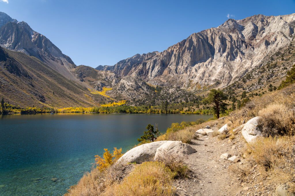 The first part of this hike is relatively mild, meandering gently along Lake Sabrina’s western shore.