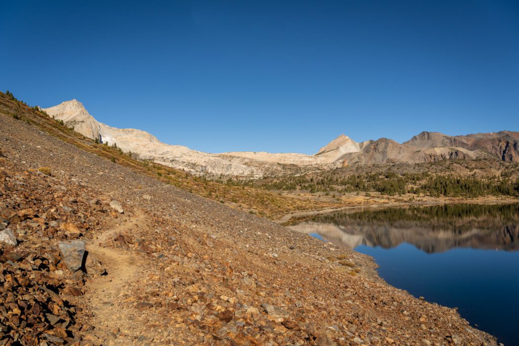 Go counterclockwise and do the full loop because that way you have the views across Saddlebag Lake towards North Peak as a nice way to start your hike, and then you’ll have that peak towering in front of you for the rest of the hike.