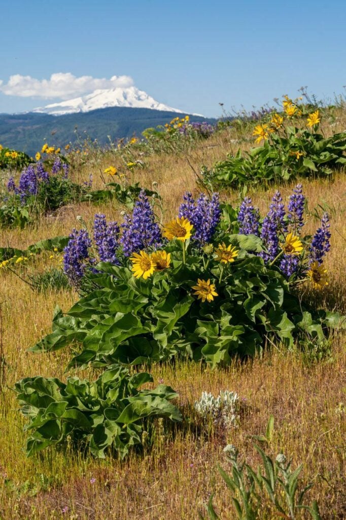 It was early spring, and the trail was COVERED in balsamroot and lupine as far as the eye could see, with Mount Hood’s snowy peak in the distance. Magical.