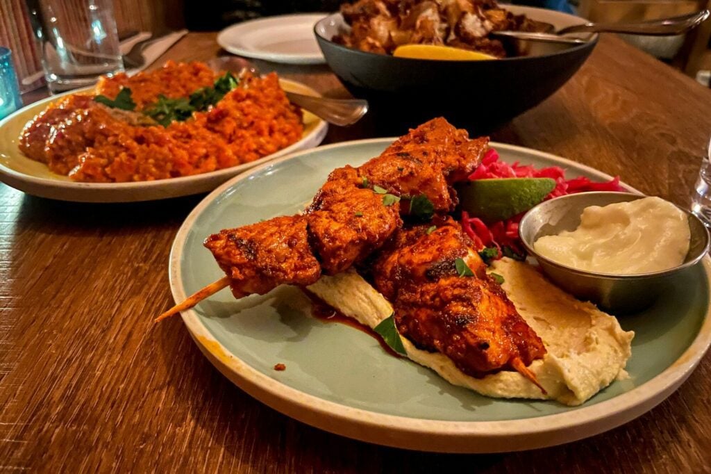 Mostly because it has a ton of gluten free options along with one of the best versions of shish tawook, a lemon-y, garlicky grilled chicken dish that we love.